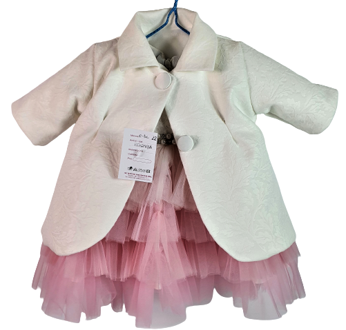 Compleu botez fete sezon rece, marimea 62, alb-roz, 0-3 luni RTX0006D!